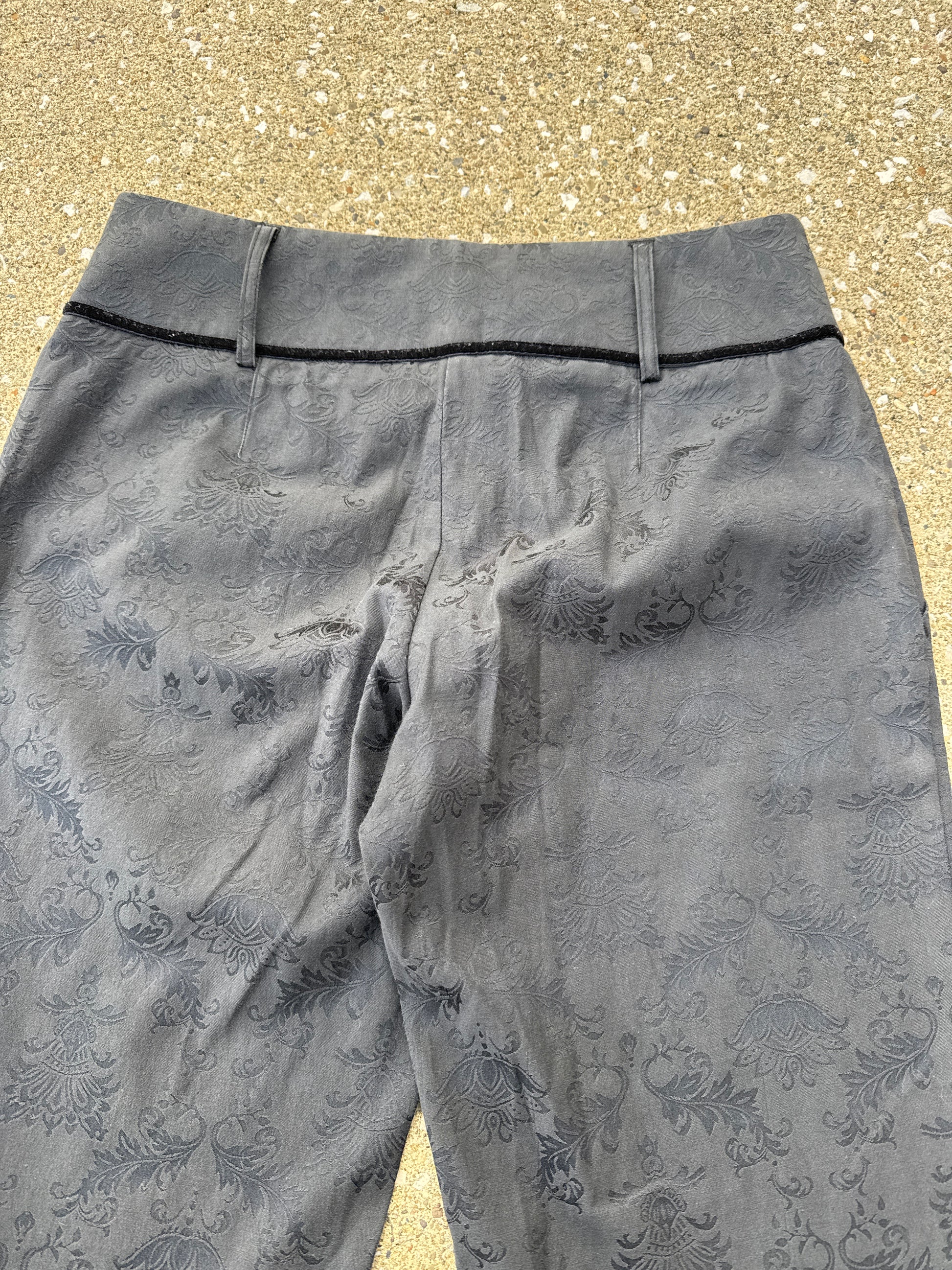 Black floral design pants. A little fading near waist band